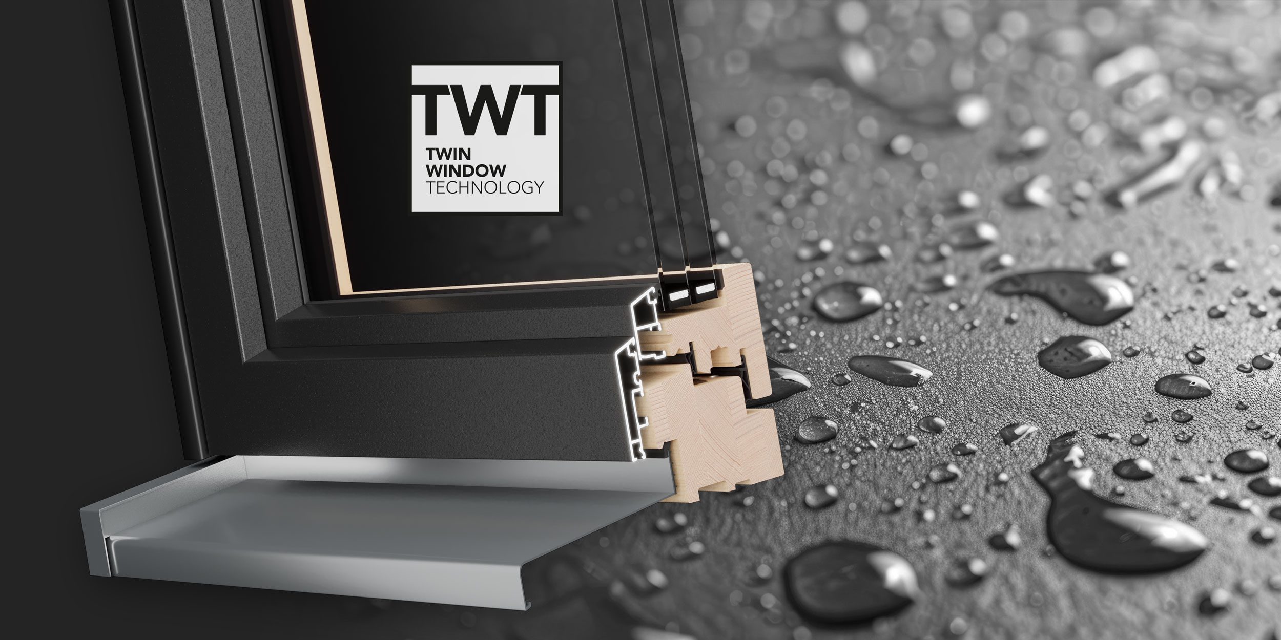Die neue TWIN WINDOW-Technologie macht keinen Unterschied mehr zwischen Holz- oder Holz-Alu-Fenster.